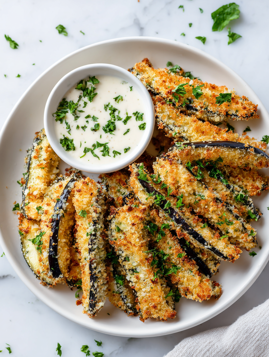 Focusing on the crispy, oven-baked texture that mimics fried eggplant but without the oil splatters and guilt.